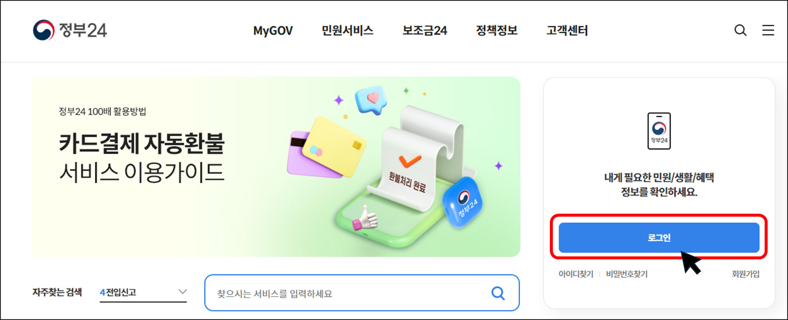 1. 정부 24 홈페이지 접속