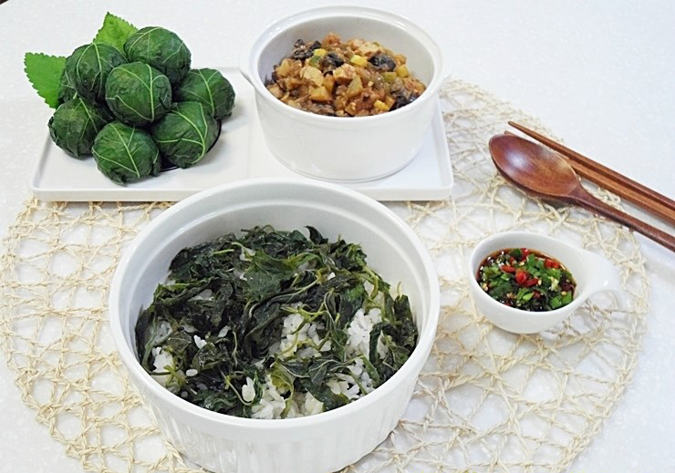 - 위에서 먼저 정리한 잘 펼쳐진 뽕잎에 위 양념장에 잘 버무린 밥을 한 숟가락씩 넣고 보자기 싸듯 쌈밥으로 말아주면 끝입니다. 여름에 소풍이나 외출 시 김밥은 금방 상하지만 뽕잎쌈밥은 김밥보다는 덜 상합니다. 그래서 특히 여름철 소풍시 준비하면 더욱 좋습니다.