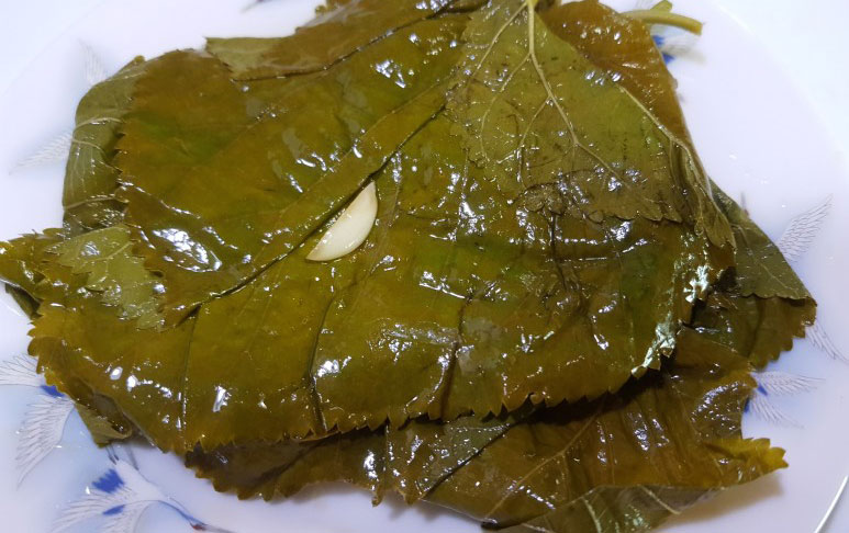 - 식힌 간장물을 2번처럼 준비한 뽕잎에 붓습니다. 2일 후, 간장물은 따라내어 한번 더 팔팔 끓여 동일한 방법으로 다시 붓습니다. 이 과정을 2~3번 반복하면 상하지 않고 더 오래 두고 먹을 수 있습니다. 바로 먹을 것이라면 한 번만 해도 좋습니다.