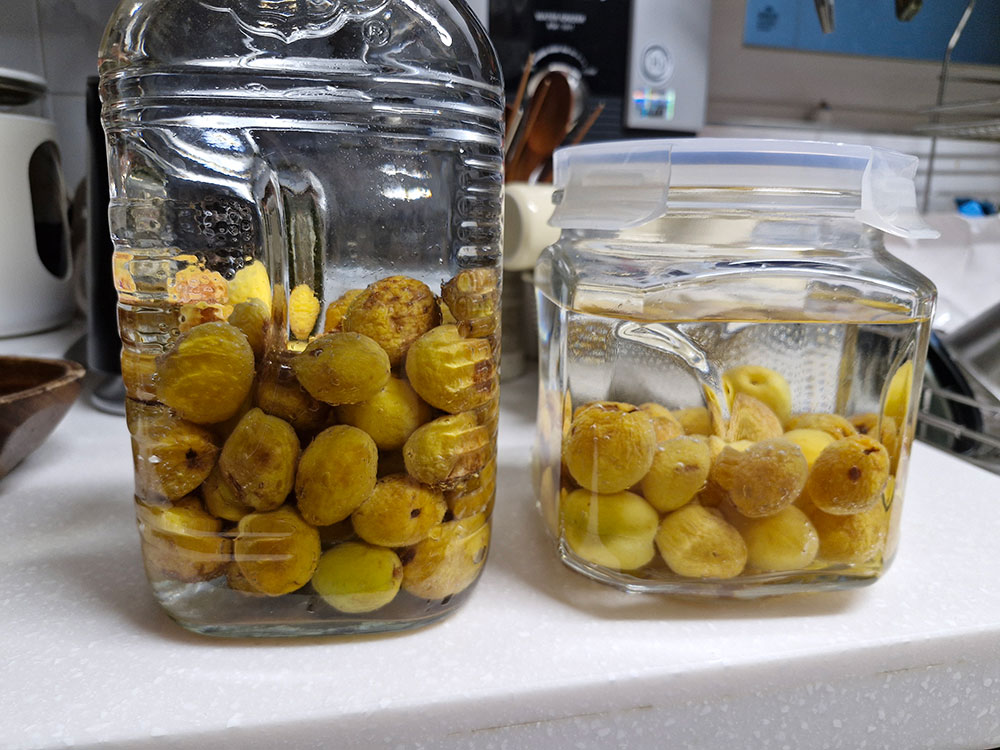 채반에 매실을 널어 말립니다. 저는 바람이 잘 통하는 베란다에서 말리고 있습니다. 2~3일 지나면 위 사진과 같이 매실이 더 익어가며 노란색으로 외피가 변합니다.