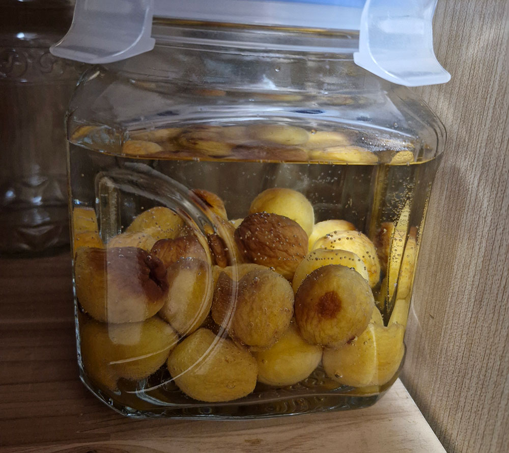 제 경험상 약 3개월정도 지나면 술이 노르스름하게 색이 변하고 잘 익더군요. 3개월 후 열매를 건지고 더 숙성시키거나 먹기 시작하면 됩니다. 뚜껑에 제조일을 표시하고 기다리면 끝입니다. 이제 맛있게 먹는 일만 남았네요. ㅎ