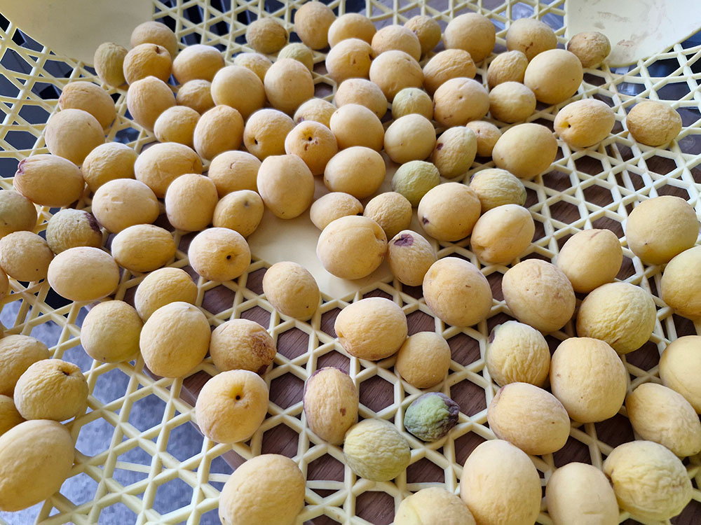 채반에 매실을 널어 말립니다. 저는 바람이 잘 통하는 베란다에서 말리고 있습니다. 2~3일 지나면 위 사진과 같이 매실이 더 익어가며 노란색으로 외피가 변합니다.