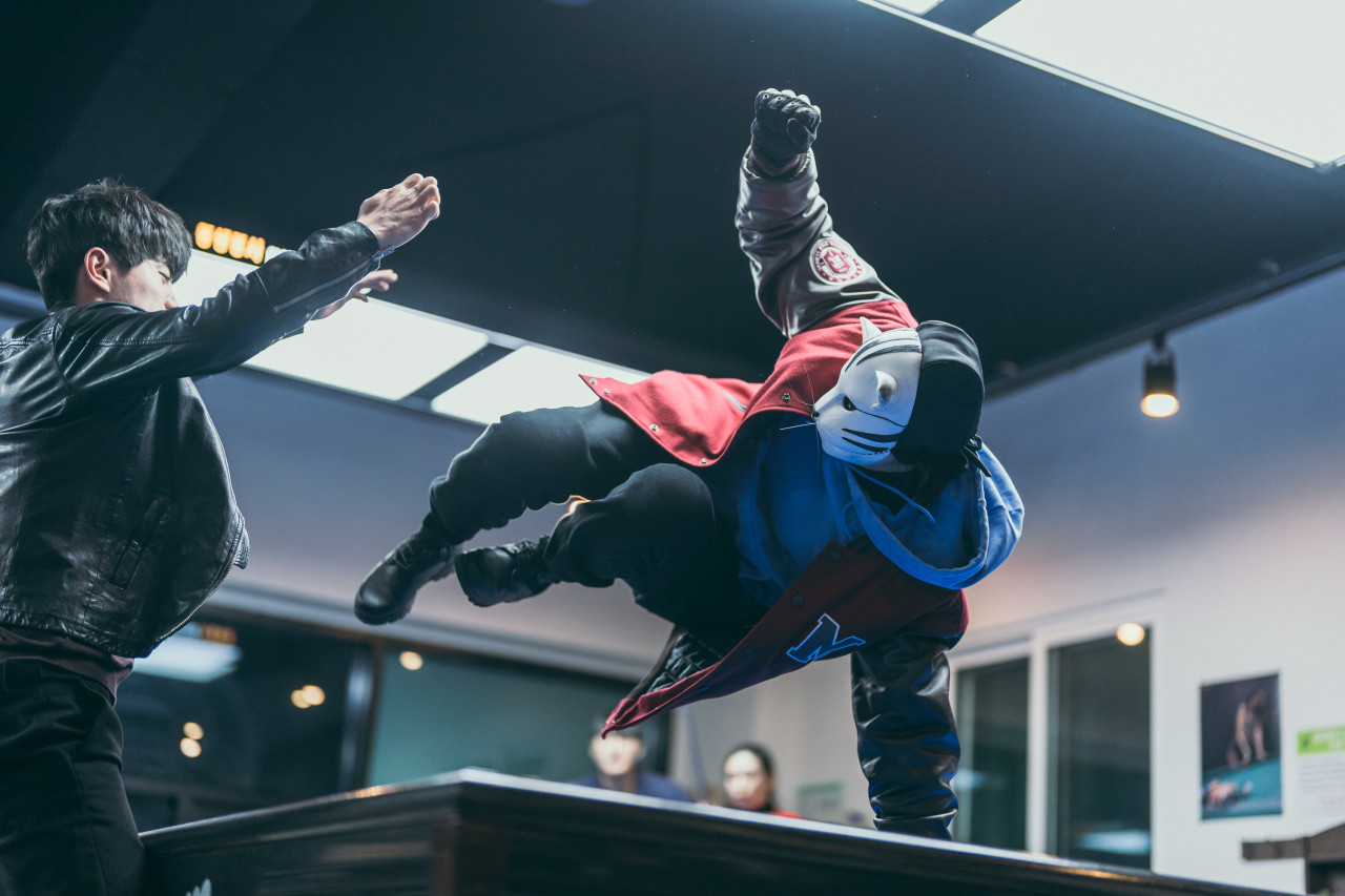 한수강은 동영상 속 고양이를 찾기 위해 학생들을 괴롭히고 결국엔 시민이 고양이 탈의 주인공임을 알게 됩니다. 수강은 학교축제가 열리는 당일 모두가 보는 앞에서 일대일 맞짱을 뜨자고 요구합니다. 학교축제 당일 수강의 선 넘은 악행을 꾹꾹 참아왔던 전교생은 고양이 탈을 모두 만들어 쓰고 대동단결하여 고양이 탈을 응원할 것을 결의합니다. 결국 시민의 요구에 응할 수밖에 없던 시민은 수강과 결투를 벌이게 되고 결국 고양이 탈을 벗고 자신의 신분을 노출합니다.