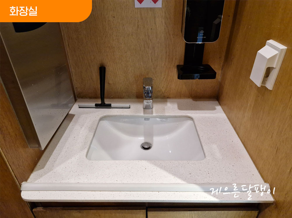 비데시설이 있는 화장실은 갯수가 많아 기다림 없이 여유 있게 이용할 수 있습니다. 개수대 시설도 여러대라 늘 여유롭습니다. 한 시간에 1번씩 직원이 편의시설을 돌며 청소와 뒷정리를 해서 개수대 하수구엔 음식물쓰레기 한 톨 구경할 수 없을 정도로 깨끗하게 관리되고 있습니다.