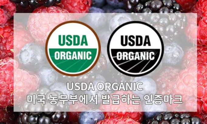 미국농무부에서 발급하는 인증으로 국내에 가장 많이 알려져 있습니다. 최소 3년간 화학비료와 농약을 일체 사용하지 않아야 하는 것은 물론, 물과 소금을 제외한 원료 95% 이상이 유기농 성분인 제품에만 인증마크를 표시할 수 있습니다. 유기농업 종사자는 천연자원을 보호하고 생물 다양성을 보존하고 있음을 입증하는 작물과 가축이어야만 합니다. 또한 이러한 작물과 가축으로만 제품을 가공 생산하고 있다는 사실을 입증해야만 합니다. 유전자변형생물체, 전리 방사선, 오니, 대부분의 합성 살충제와 농약은 유기농 생산에는 100% 금지하고 있습니다.
